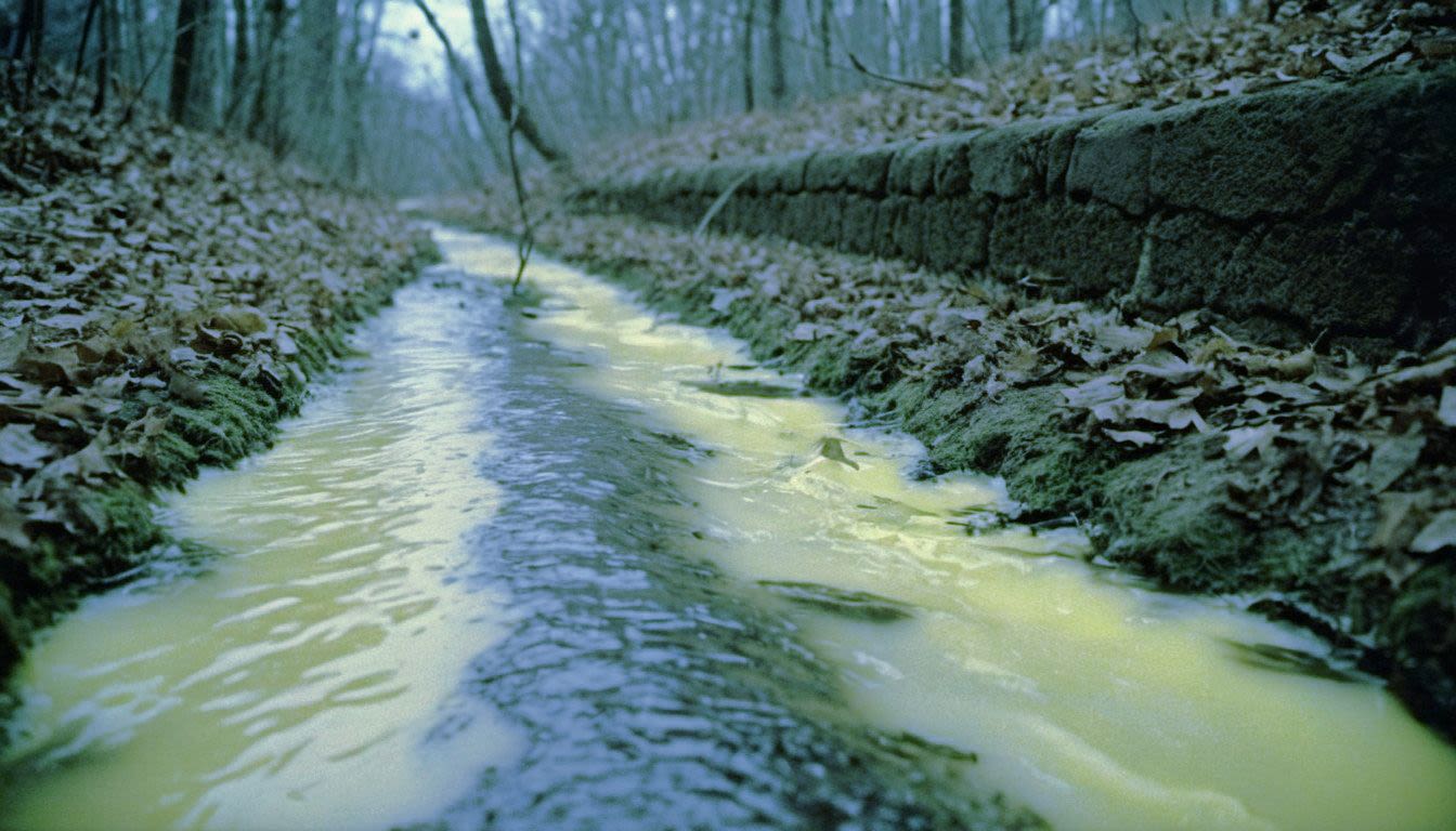 Wir befinden uns in der Au südlich der Viehofener Seen. Bis zum Jahr 1906 blieb dieses kleine Wäldchen nahezu unberührt, dann fing die neu gebaute Glanzstoff-Fabrik an, ihre Chemieabfälle dort zu entsorgen. Außerdem grub und betonierte man damals das sogenannte „Säurebachl“ direkt durch die Au; einen Abfluss der Glanzstoff, durch den knallgelbe Chemikalien mehr oder weniger ungefiltert in die Traisen geleitet wurden. Auf dieser Müllhalde errichteten die Nazis im zweiten Weltkrieg zwei Zwangsarbeiterlager: Eines für ungarische Juden, ein anderes für zumeist ukrainische Zivilisten.